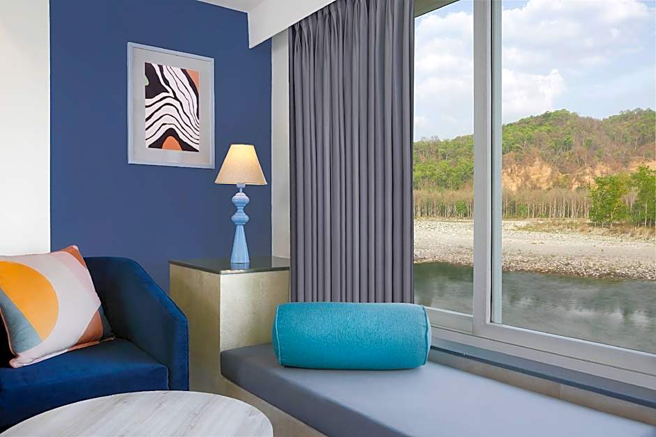Select balconies provide garden or river views, adding a touch of serenity to the stay. Pets are allowed with extra charges. For gatherings or events, meeting and banquet facilities are available for an additional fee, and the property sits along National Highway 121 in the Dhikuli area, offering easy access to the Jim Corbett region.